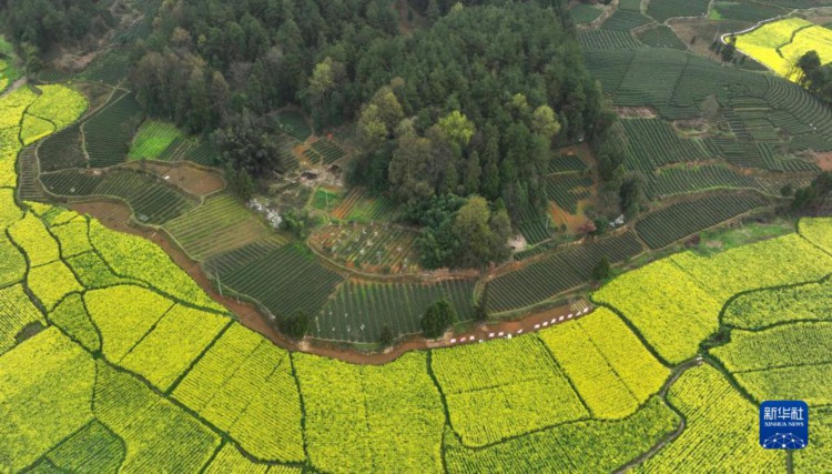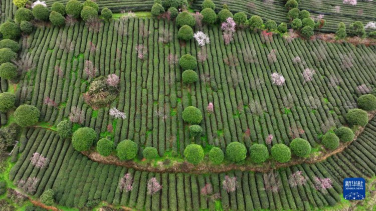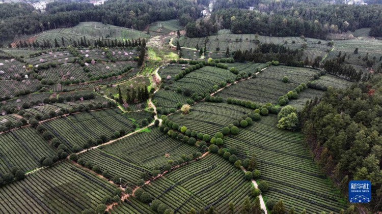 3月23日拍摄的凤冈县永安镇田坝社区生态茶园基地(无人机照片)。