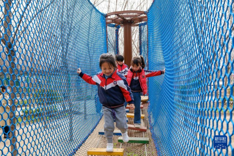 3月22日,吕村镇星星幼儿园的小朋友在西裴村“猪猪乐园”儿童游乐场玩耍。