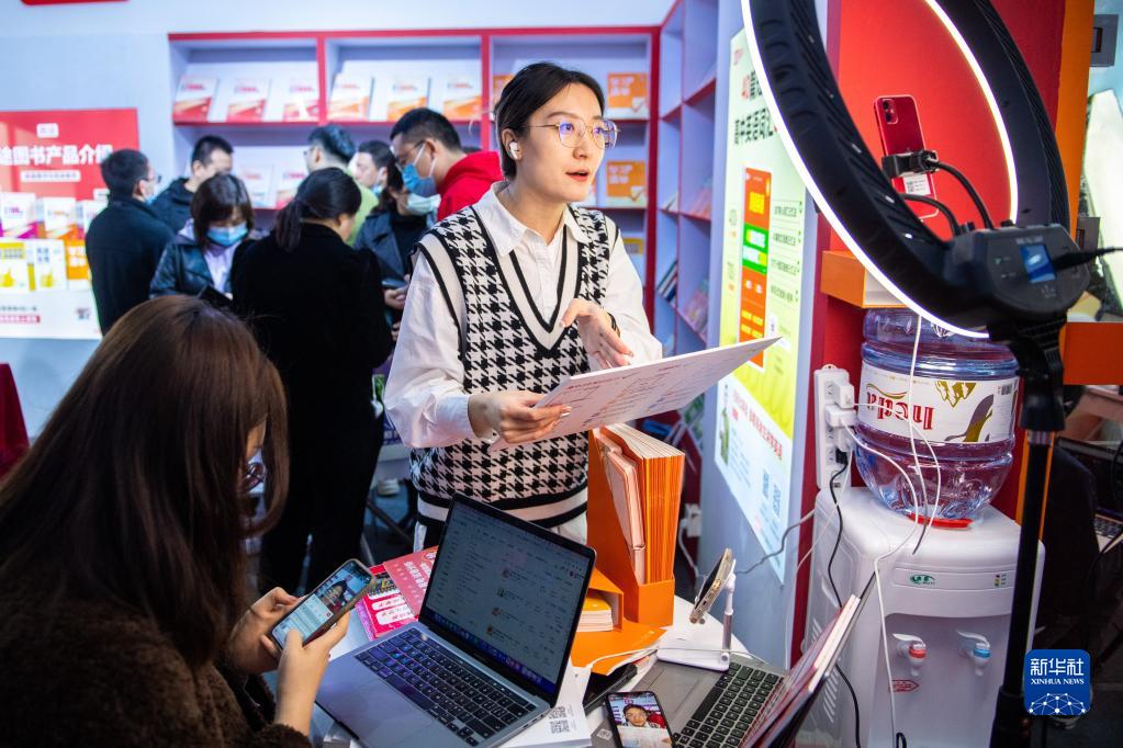 3月24日,在湖南国际会展中心,主播在直播推销图书。