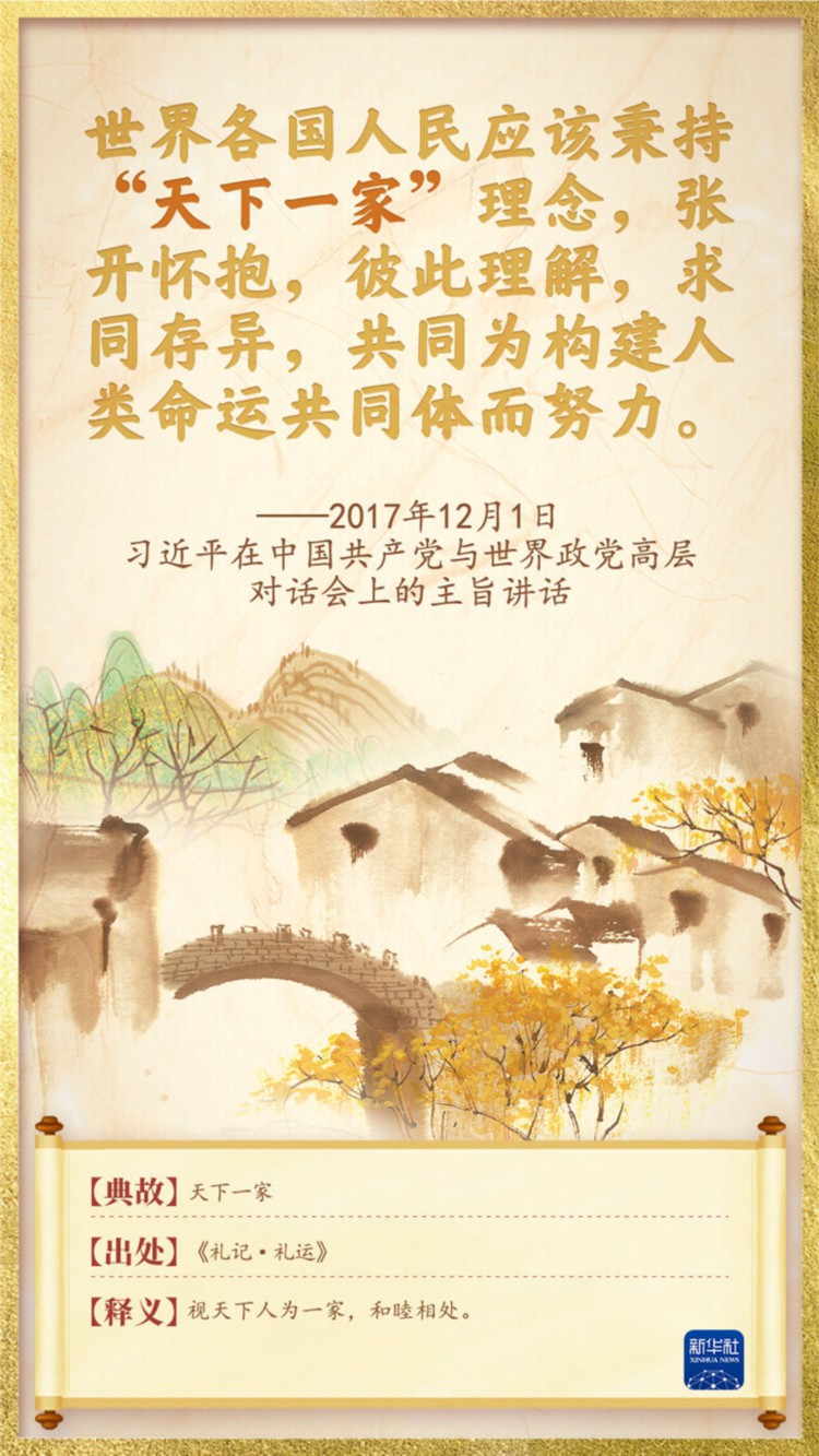 “这个世界,各国相互联系、相互依存的程度空前加深,人类生活在同一个地球村里,生活在历史和现实交汇的同一个时空里,越来越成为你中有我、我中有你的命运共同体。”2013年3月23日,习近平担任中国国家主席后首访俄罗斯,提出了人类命运共同体的重要理念。十年间,习近平总书记在不同场合反复强调“天下一家”、命运与共,主张各国和衷共济,携手创造世界的美好未来。我们梳理了总书记关于命运与共的用典,一起来学习。