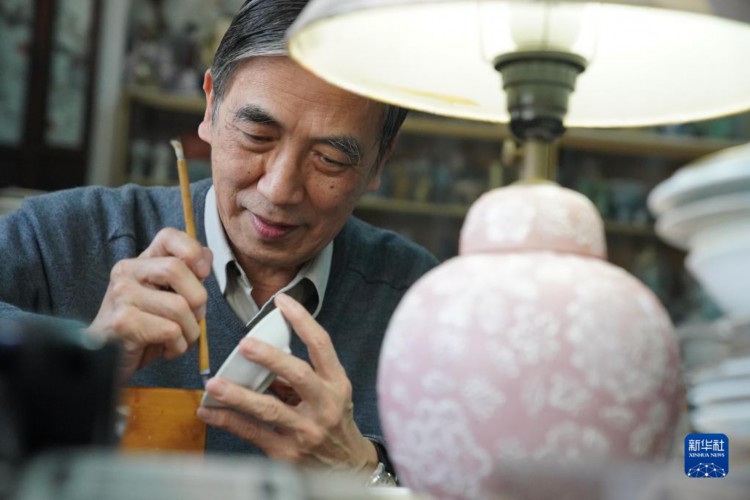 2月24日,粤东磁厂第三代传人曹志雄在制作彩瓷。新华社记者 吕小炜 摄