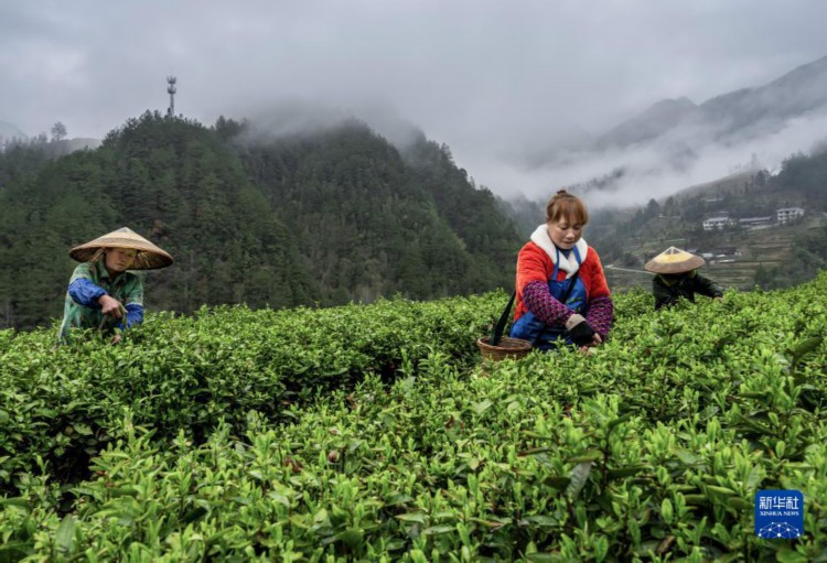 3月21日,茶农在新化县奉家镇渠江源村采茶。