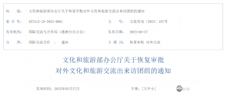 4月1日起文旅部门恢复审批对外文化和旅游交流出来访团组