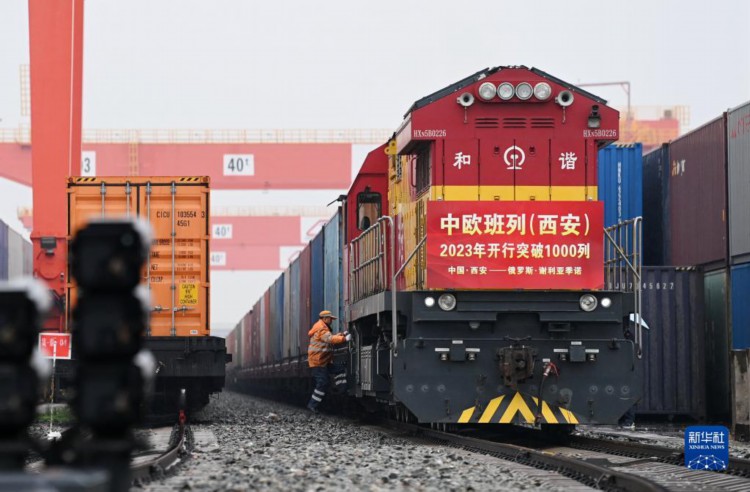 在西安国际港站,X8489次中欧班列准备驶往俄罗斯谢利亚季诺(2023年3月23日摄)。新华社记者 李一博 摄