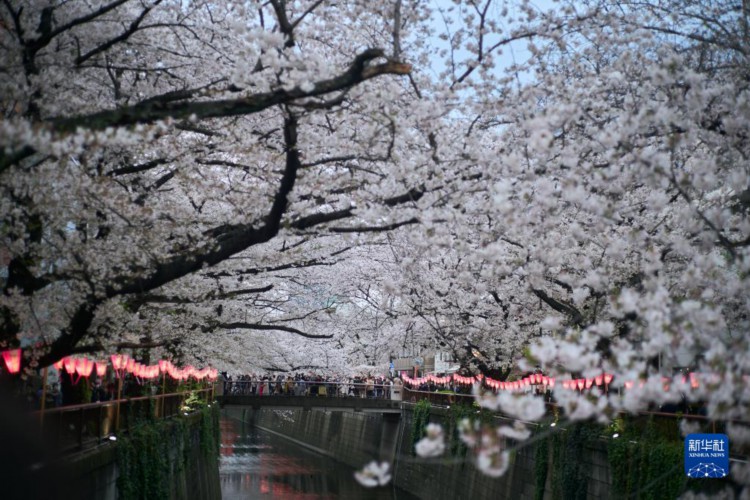 近日,东京进入樱花季,不少民众来到东京著名赏樱点目黑川观赏樱花。