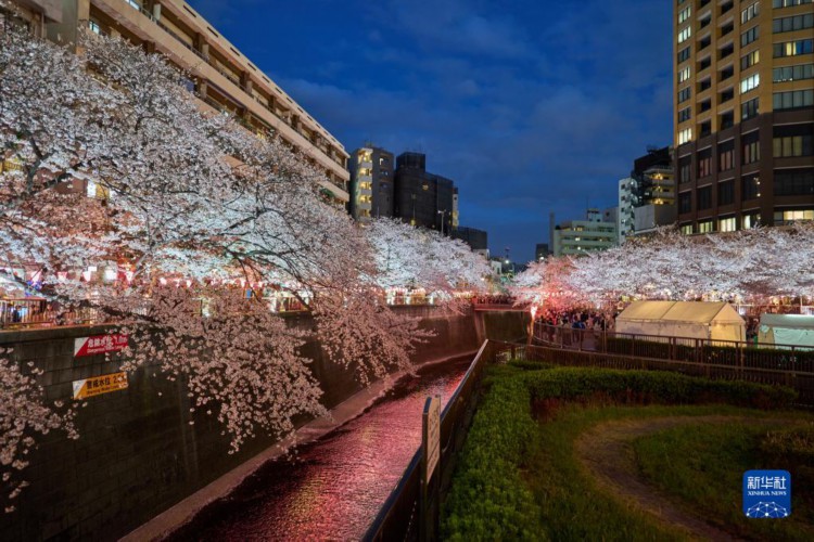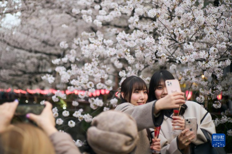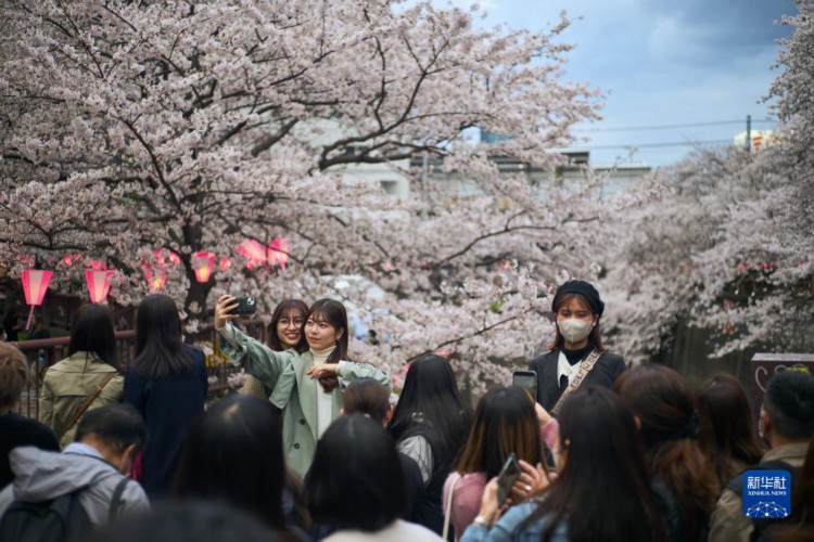 3月27日,人们在日本东京目黑川畔赏樱。 近日,东京进入樱花季,不少民众来到东京著名赏樱点目黑川观赏樱花。 新华社记者 张笑宇 摄
