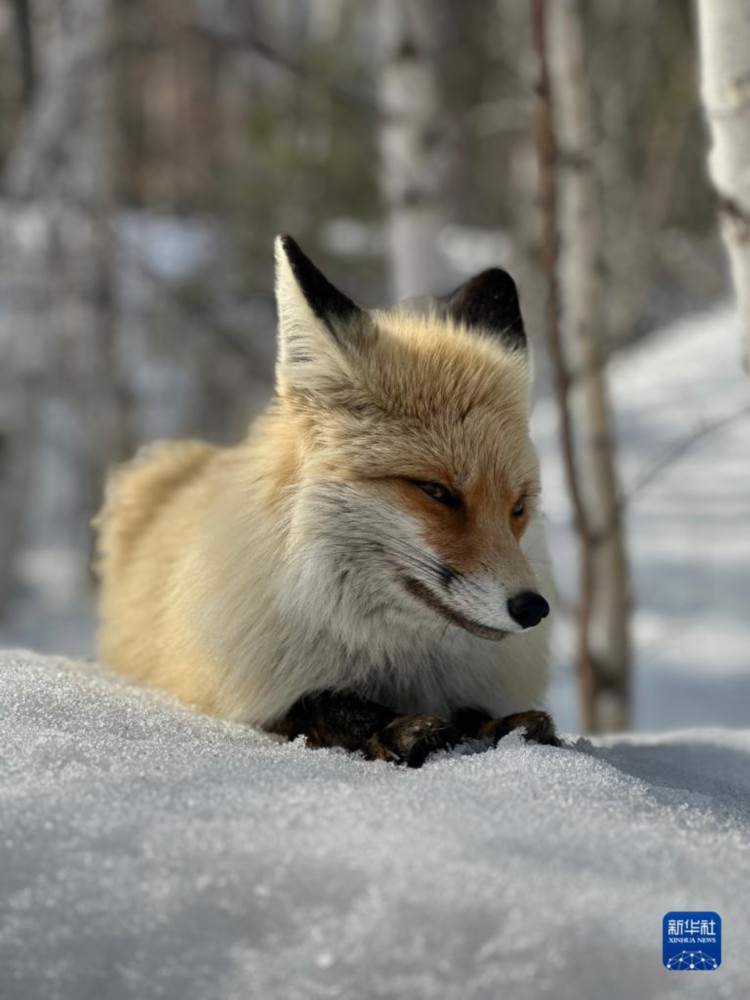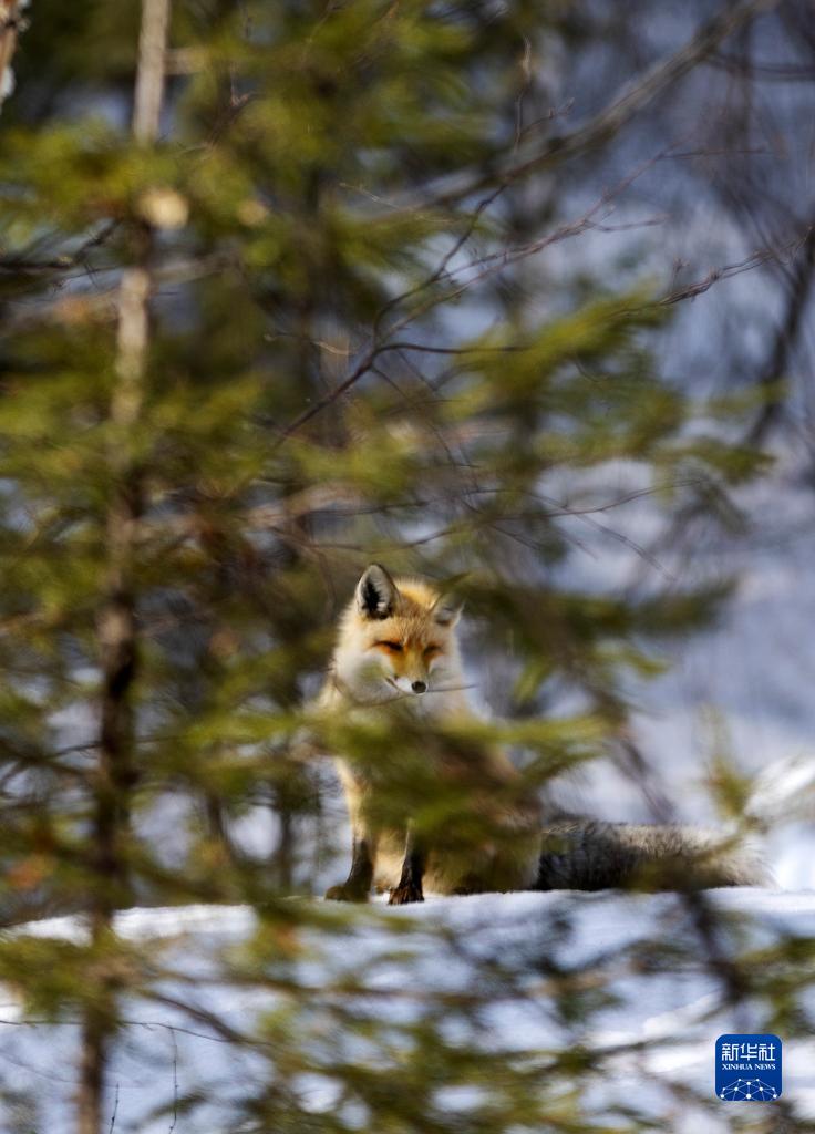 3月29日,一只赤狐在喀纳斯风景区休憩。