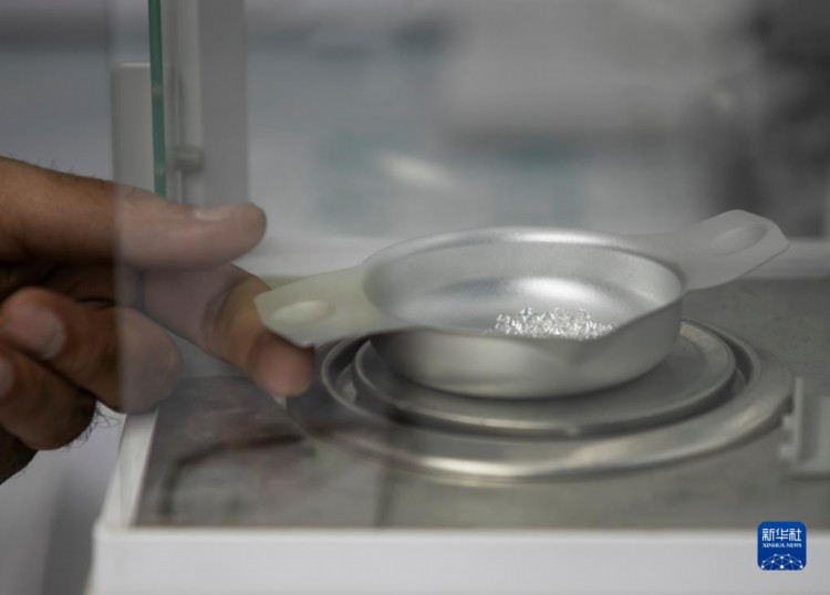 3月29日,参展商在以色列拉马特甘的钻石展上为钻石称重。 2023以色列国际钻石展于3月28日至30日在以色列拉马特甘举行,吸引数百家参展商参展。据了解,这是新冠疫情后以色列举行的首场国际钻石展。以色列是国际钻石交易和加工中心之一。 新华社记者 陈君清 摄