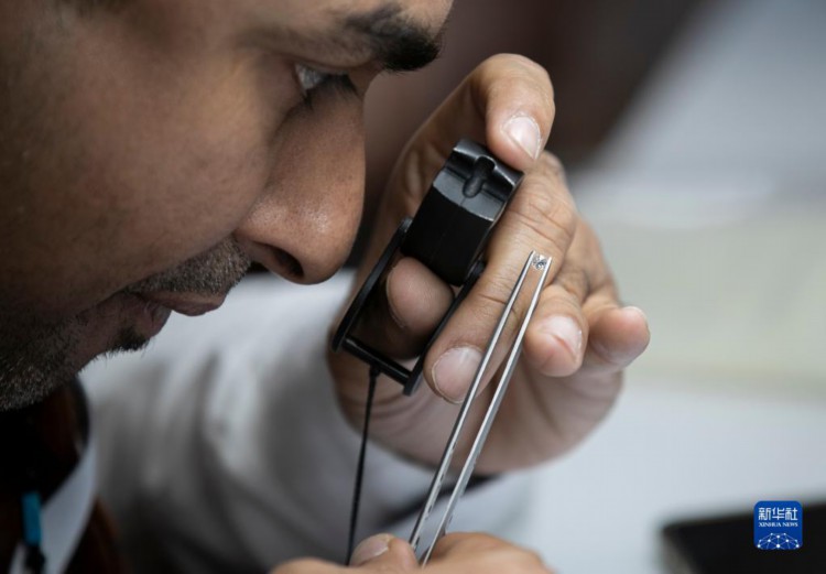 3月29日,买家在以色列拉马特甘的钻石展现场查看钻石。 2023以色列国际钻石展于3月28日至30日在以色列拉马特甘举行,吸引数百家参展商参展。据了解,这是新冠疫情后以色列举行的首场国际钻石展。以色列是国际钻石交易和加工中心之一。 新华社记者 陈君清 摄