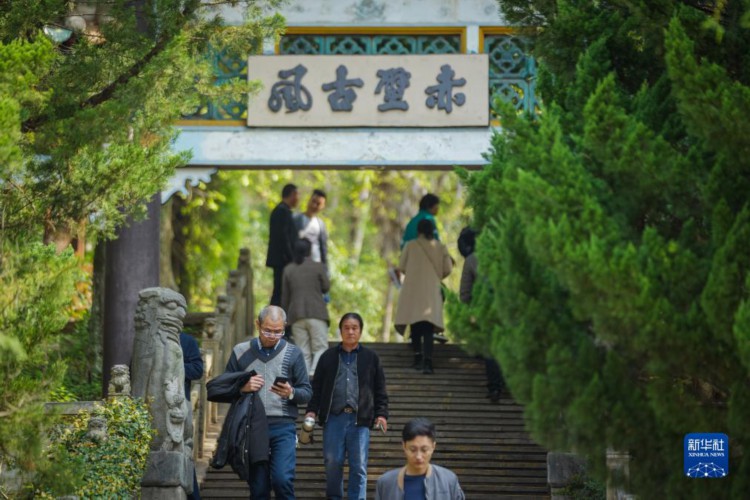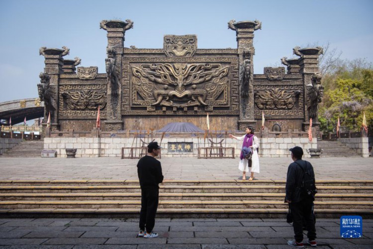 3月30日,游客在三国赤壁古战场景区游览。 近日,湖北省咸宁市三国赤壁古战场景区迎来一波客流高峰,其丰富的三国文化旅游资源吸引各方游客前来观光游览。 新华社记者 伍志尊 摄