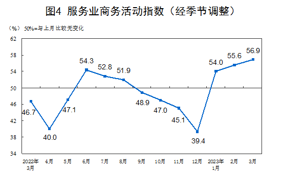 3月份,非制造业商务活动指数为58.2%,比上月上升1.9个百分点,高于临界点,非制造业恢复发展步伐加快。