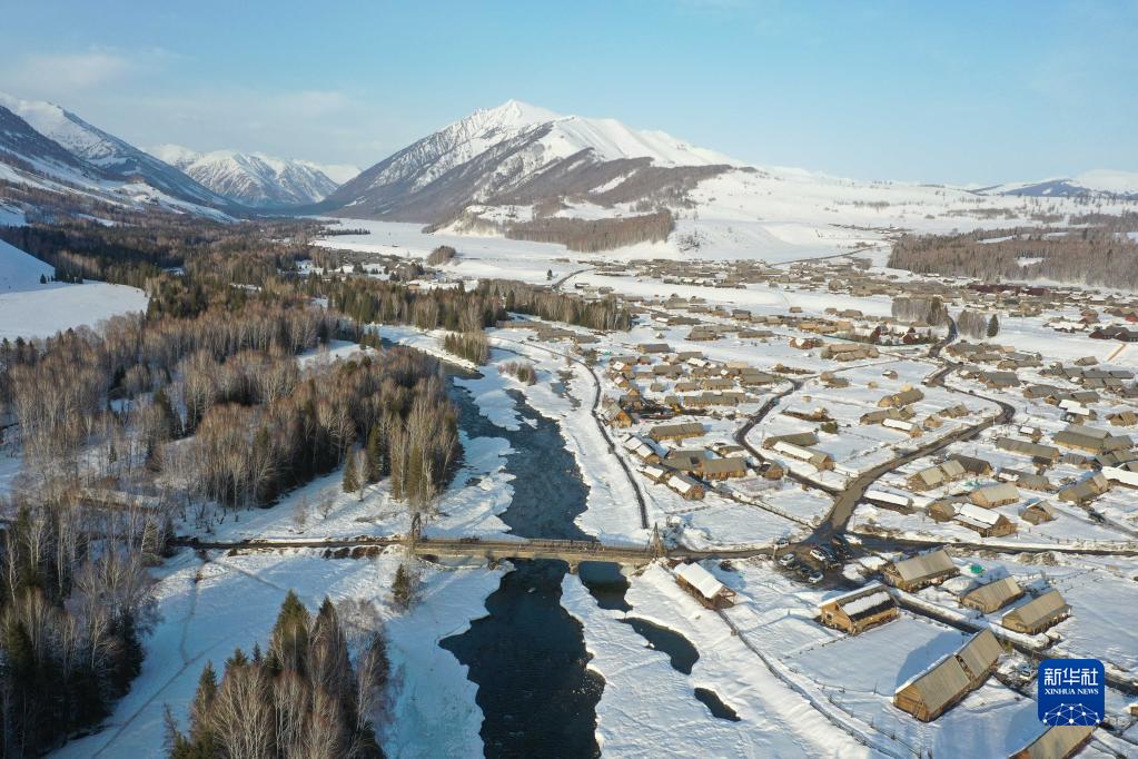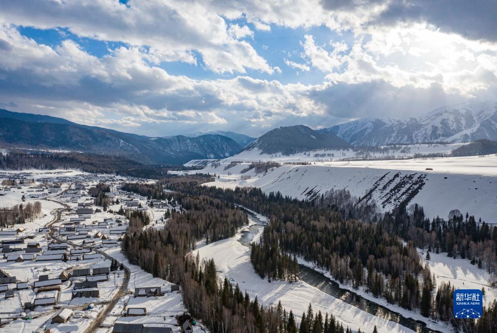3月30日早晨拍摄的禾木村(无人机全景照片)。 新华社记者李响摄 |