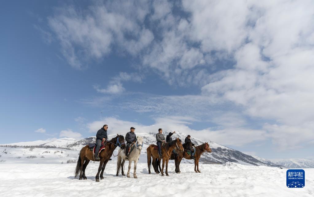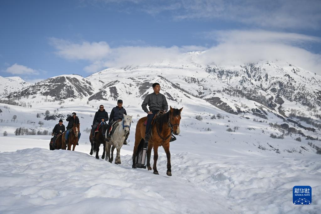 3月30日,苏卡(右一)和马队成员骑马上山。 新华社记者费茂华摄