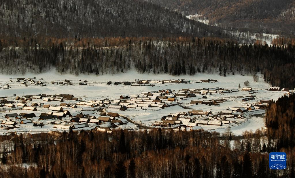 3月30日日出时分拍摄的禾木村。 新华社记者费茂华摄