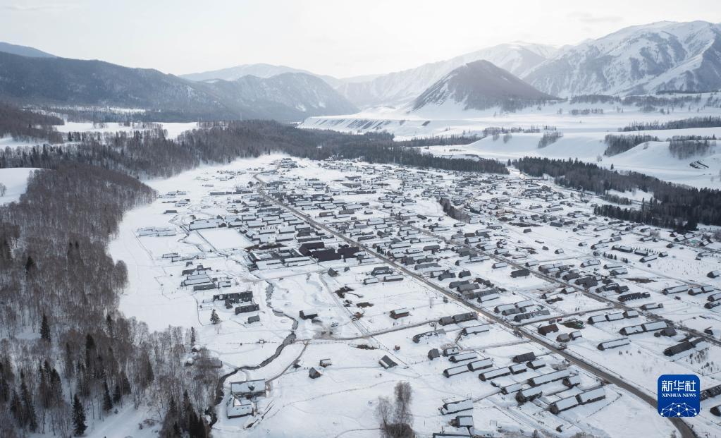 3月30日拍摄的禾木村(无人机照片)。 新华社记者杨植森摄