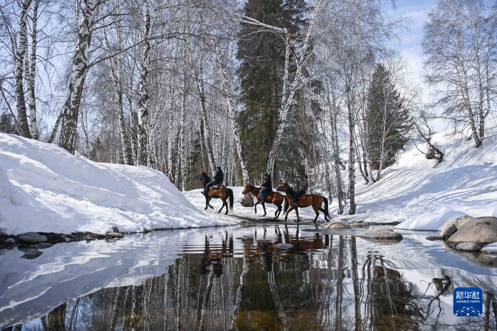 3月30日,苏卡(右)和马队队员经过一条小溪。