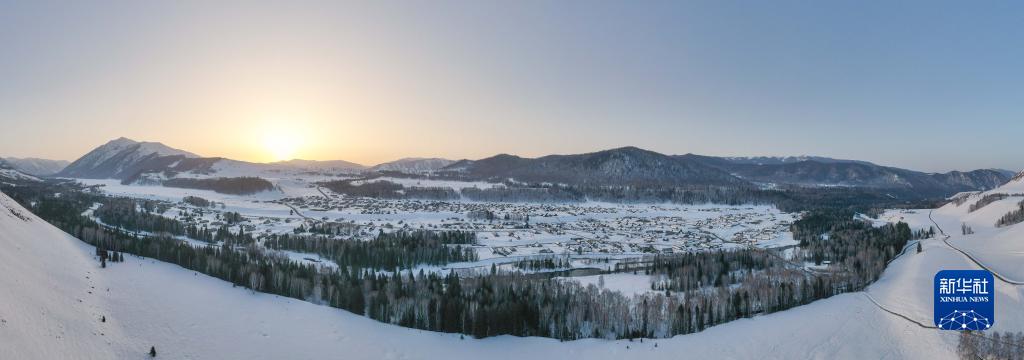 3月30日早晨拍摄的禾木村(无人机全景照片)。