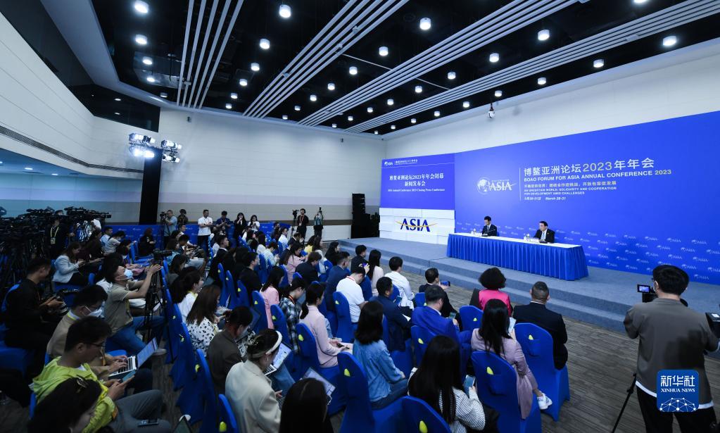 3月31日拍摄的博鳌亚洲论坛2023年年会闭幕新闻发布会现场。