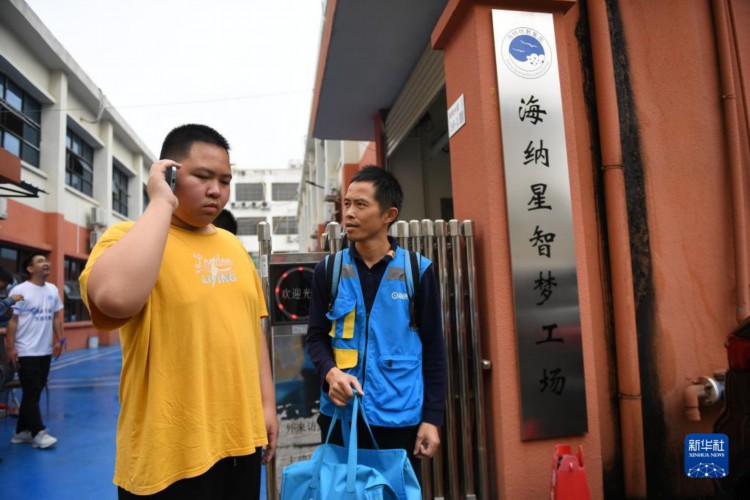 4月2日,黄志能(左)陪着爸爸黄少礼去送单。由于订货人是黄志能所在康复机构的老师,到达目的地后,父亲让黄志能帮忙打电话联系。 今年44岁的黄少礼是深圳一名闪送骑手,接单跑单时总有一人相伴,就是他16岁的儿子黄志能。 黄志能2岁时确诊孤独症,出于让他多接触外面世界的想法,黄少礼跑单送货时都会带着他。父子俩每日背着包穿梭在城市的大街小巷里,抢单、送货。黄志能方向感很强,找路、换车十分熟悉,比父亲还快。“他脑子里有个地图,去哪里都找得到。”黄少礼说,“送单时,他情绪很好,跟客人都能正常沟通。我希望每天能多接单,让他的情绪保持平稳,将来能够独立生活”。 新华社记者 毛思倩 摄