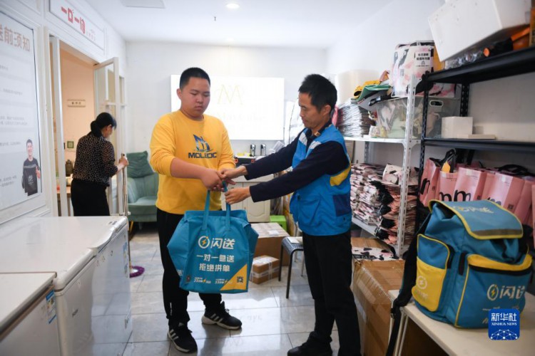4月2日,黄少礼(右)接到蛋糕店的订单,他包装好蛋糕交给儿子黄志能拿着。 今年44岁的黄少礼是深圳一名闪送骑手,接单跑单时总有一人相伴,就是他16岁的儿子黄志能。 黄志能2岁时确诊孤独症,出于让他多接触外面世界的想法,黄少礼跑单送货时都会带着他。父子俩每日背着包穿梭在城市的大街小巷里,抢单、送货。黄志能方向感很强,找路、换车十分熟悉,比父亲还快。“他脑子里有个地图,去哪里都找得到。”黄少礼说,“送单时,他情绪很好,跟客人都能正常沟通。我希望每天能多接单,让他的情绪保持平稳,将来能够独立生活”。 新华社记者 毛思倩 摄