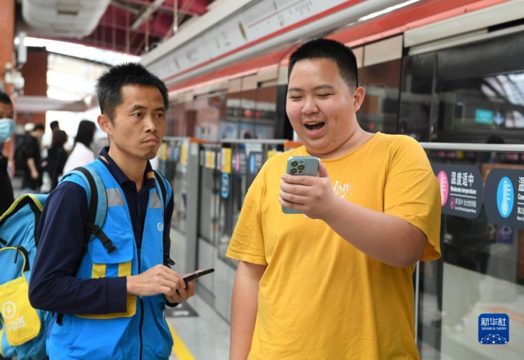 4月2日,到达目的地以后,黄志能(左)告诉爸爸黄少礼应该走哪个出站口。黄志能脑子里就像有一张地铁图,两人一起坐地铁时基本不用依靠导航。 今年44岁的黄少礼是深圳一名闪送骑手,接单跑单时总有一人相伴,就是他16岁的儿子黄志能。 黄志能2岁时确诊孤独症,出于让他多接触外面世界的想法,黄少礼跑单送货时都会带着他。父子俩每日背着包穿梭在城市的大街小巷里,抢单、送货。黄志能方向感很强,找路、换车十分熟悉,比父亲还快。“他脑子里有个地图,去哪里都找得到。”黄少礼说,“送单时,他情绪很好,跟客人都能正常沟通。我希望每天能多接单,让他的情绪保持平稳,将来能够独立生活”。 新华社记者 毛思倩 摄