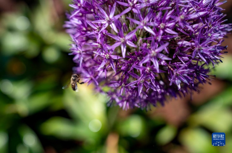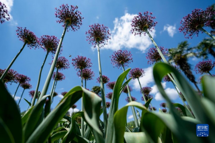 这是4月3日在昆明植物园中乌全球葱园(昆明中心)拍摄的葱花。 近日,昆明植物园中乌全球葱园(昆明中心)内的近十个品种、6000余株观赏葱属植物逐渐迎来盛花期,吸引游客前来观光。据了解,葱属植物具有重要的经济利用价值,许多种类被人类作为食用、药用和观赏植物进行了长期的栽培利用。 新华社记者 陈欣波 摄