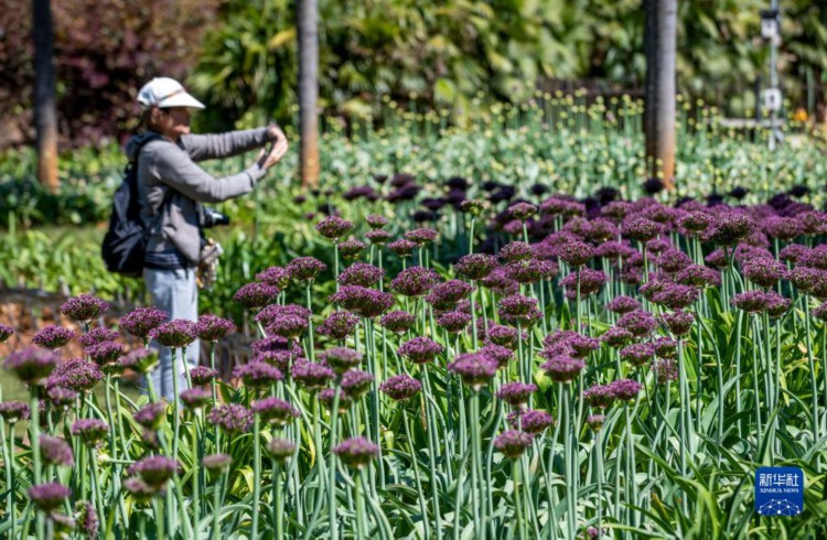 4月3日,一名游客在昆明植物园中乌全球葱园(昆明中心)观光游览。 近日,昆明植物园中乌全球葱园(昆明中心)内的近十个品种、6000余株观赏葱属植物逐渐迎来盛花期,吸引游客前来观光。据了解,葱属植物具有重要的经济利用价值,许多种类被人类作为食用、药用和观赏植物进行了长期的栽培利用。 新华社记者 陈欣波 摄