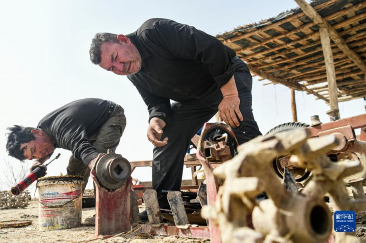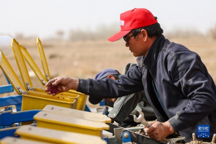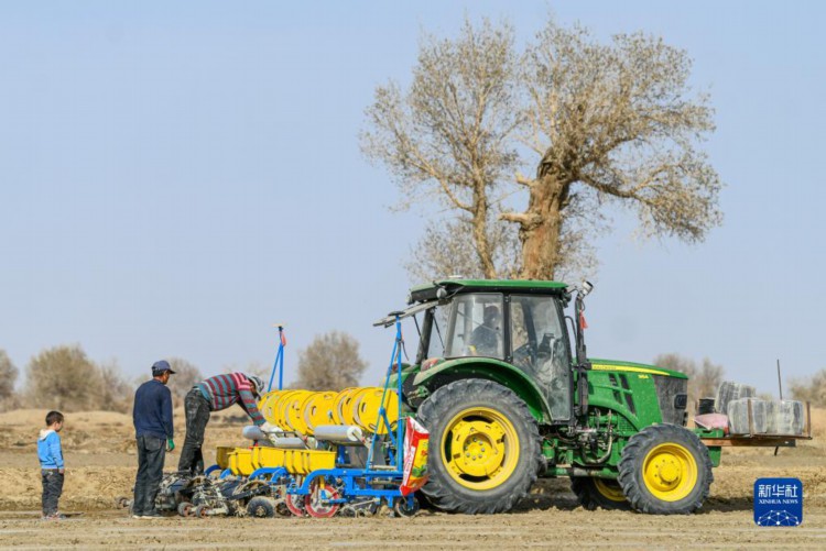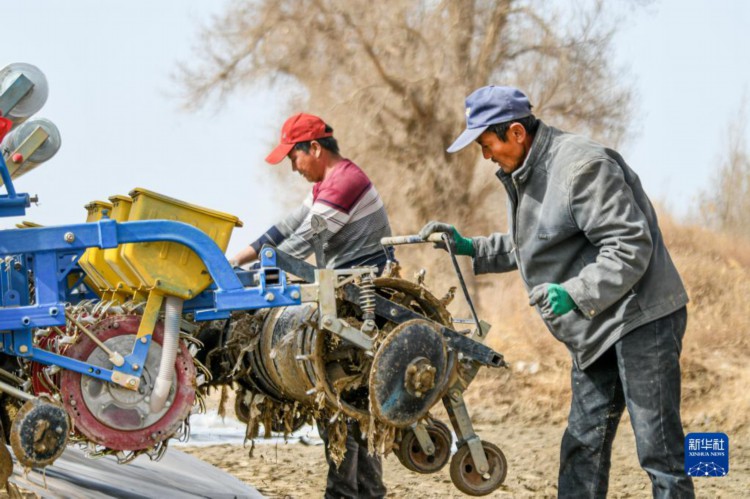 在新疆尉犁县,棉农尔肯·热依木(右)检修农机准备春播(3月29日摄)。 进入3月底4月初,天气渐暖,土壤墒情好,新疆棉花春播自南向北拉开序幕。在新疆麦盖提县、尉犁县等地,当地棉农借助卫星导航、农机等,机械化实施作业,全面开展棉花播种工作。 得益于独特的光热条件,新疆成为我国最大、世界重要的棉花产区。近年来,新疆持续推进优棉举措,棉花生产呈现规模化种植比例增加、集约化水平提升的发展态势,推动棉花单产不断提升。 2022年,新疆棉花播种面积为3745.4万亩,占全国棉花种植面积的83.2%,棉花产量539.1万吨,较上年增加26.2万吨,占全国棉花总产量的比重持续提升,达到90.2%,创历史新高。新疆棉花总产、单产、种植面积、商品调拨量连续28年位居全国第一。 新华社记者 王菲 摄