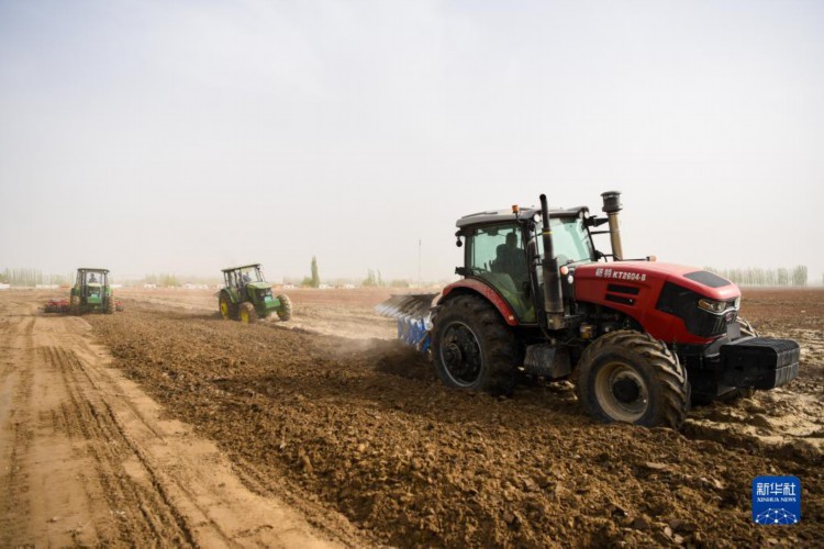 在新疆麦盖提县,棉农驾驶犁地机和整地机在棉田作业(4月2日摄)。 进入3月底4月初,天气渐暖,土壤墒情好,新疆棉花春播自南向北拉开序幕。在新疆麦盖提县、尉犁县等地,当地棉农借助卫星导航、农机等,机械化实施作业,全面开展棉花播种工作。 得益于独特的光热条件,新疆成为我国最大、世界重要的棉花产区。近年来,新疆持续推进优棉举措,棉花生产呈现规模化种植比例增加、集约化水平提升的发展态势,推动棉花单产不断提升。 2022年,新疆棉花播种面积为3745.4万亩,占全国棉花种植面积的83.2%,棉花产量539.1万吨,较上年增加26.2万吨,占全国棉花总产量的比重持续提升,达到90.2%,创历史新高。新疆棉花总产、单产、种植面积、商品调拨量连续28年位居全国第一。 新华社记者 丁磊 摄