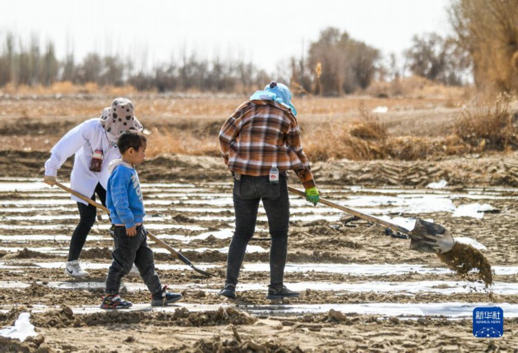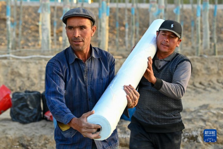 在新疆尉犁县,棉农在地膜上补土(3月30日摄)。 进入3月底4月初,天气渐暖,土壤墒情好,新疆棉花春播自南向北拉开序幕。在新疆麦盖提县、尉犁县等地,当地棉农借助卫星导航、农机等,机械化实施作业,全面开展棉花播种工作。 得益于独特的光热条件,新疆成为我国最大、世界重要的棉花产区。近年来,新疆持续推进优棉举措,棉花生产呈现规模化种植比例增加、集约化水平提升的发展态势,推动棉花单产不断提升。 2022年,新疆棉花播种面积为3745.4万亩,占全国棉花种植面积的83.2%,棉花产量539.1万吨,较上年增加26.2万吨,占全国棉花总产量的比重持续提升,达到90.2%,创历史新高。新疆棉花总产、单产、种植面积、商品调拨量连续28年位居全国第一。 新华社记者 王菲 摄