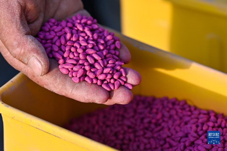 在新疆尉犁县,棉田管理人员检查棉花种子(3月30日摄)。 进入3月底4月初,天气渐暖,土壤墒情好,新疆棉花春播自南向北拉开序幕。在新疆麦盖提县、尉犁县等地,当地棉农借助卫星导航、农机等,机械化实施作业,全面开展棉花播种工作。 得益于独特的光热条件,新疆成为我国最大、世界重要的棉花产区。近年来,新疆持续推进优棉举措,棉花生产呈现规模化种植比例增加、集约化水平提升的发展态势,推动棉花单产不断提升。 2022年,新疆棉花播种面积为3745.4万亩,占全国棉花种植面积的83.2%,棉花产量539.1万吨,较上年增加26.2万吨,占全国棉花总产量的比重持续提升,达到90.2%,创历史新高。新疆棉花总产、单产、种植面积、商品调拨量连续28年位居全国第一。 新华社记者 郝昭 摄