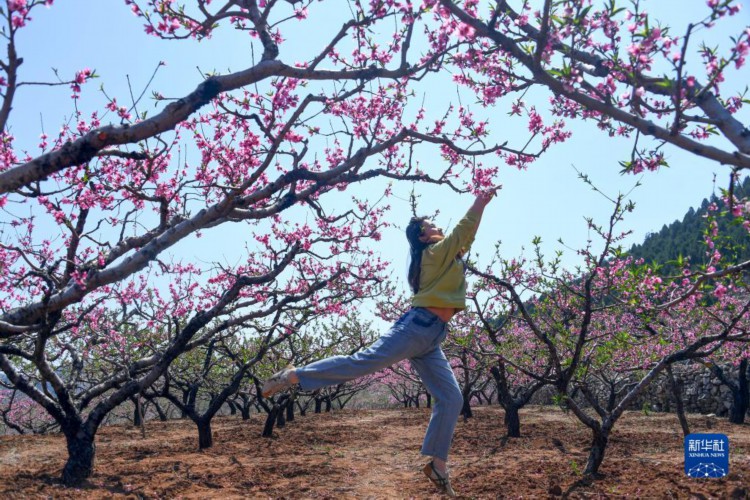 近年来,山东省枣庄市台儿庄区张山子镇大力发展甜桃产业,种植面积发展到1万余亩,在花期形成桃林花海盛景,吸引众多游客前来观赏。