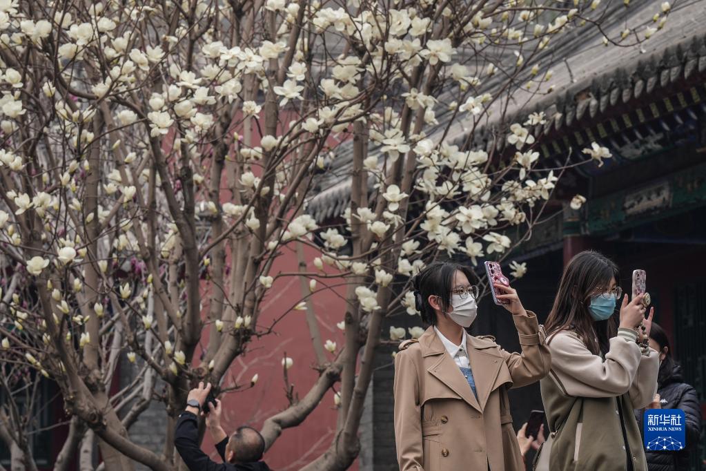 近日,随着气温的变化,沈阳故宫内的花卉逐渐开放,红墙花影吸引游客前来参观、拍照。