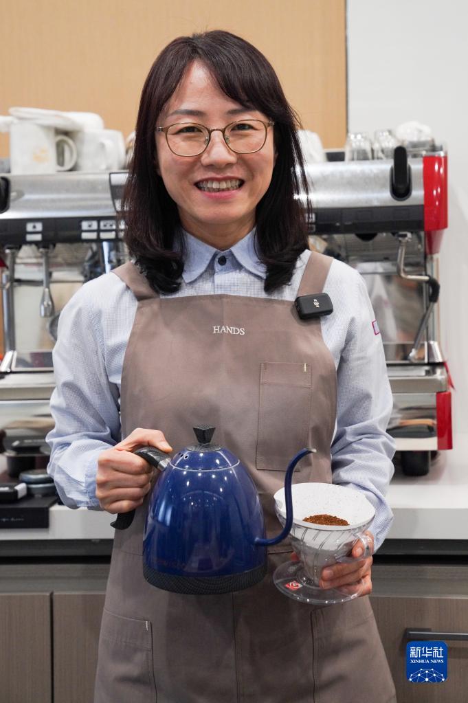这是4月4日拍摄的黄春善。黄春善是吉林延吉一家餐饮公司的负责人,也是一名咖啡培训师,目前运营着22家连锁咖啡店。从上海一家外企辞职后,2009年黄春善回到延吉开办咖啡培训班,带动年轻人创业,目前在延吉已培训了超过1000多名咖啡从业者。