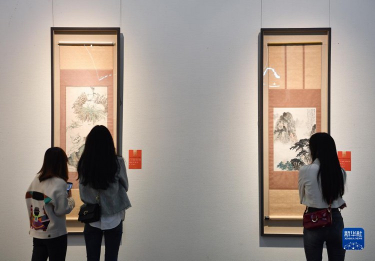 4月6日,观众在长安画派艺术中心观赏美术作品。