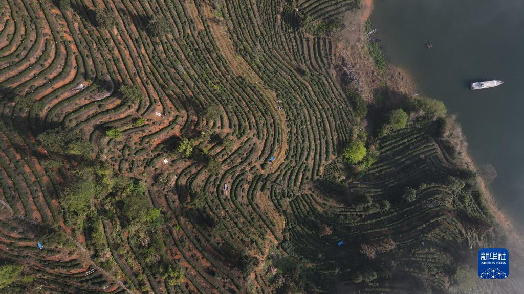 4月8日在黄山市黄山区新明乡猴坑村拍摄的茶园(无人机照片)。