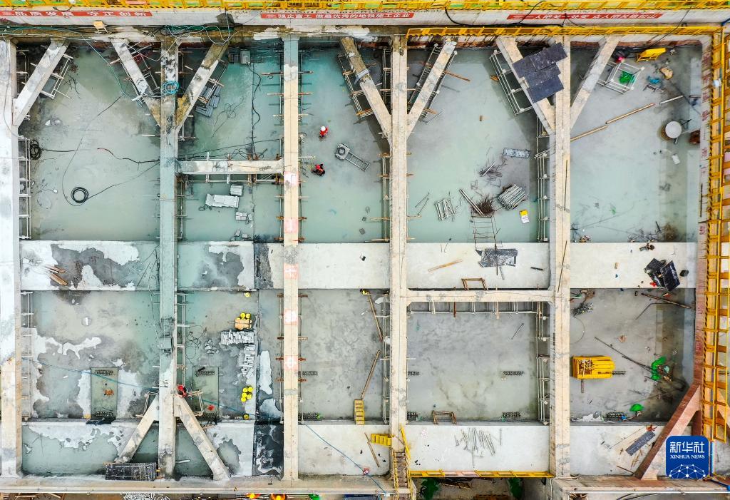 施工人员在广州地铁10号线滨江东路站清理工地(4月8日摄,无人机照片)。 当日,由中铁十一局承建的广州地铁10号线滨江东路站主体结构封顶。滨江东路站开挖长163米、宽23.3米,由于地处广州海珠中心老城区,紧邻珠江,周边高楼林立,是全线施工难度最大的车站。广州地铁10号线全长25.16公里,横穿天河、越秀、海珠、荔湾四个中心城区。 新华社记者 刘大伟 摄