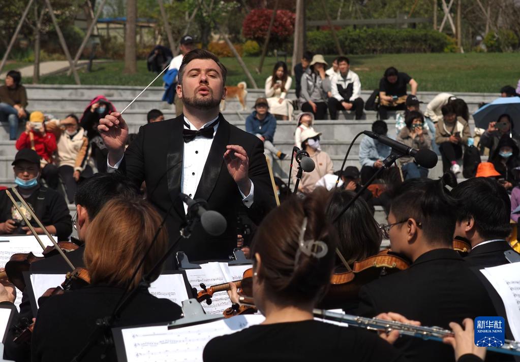 4月8日,上海九棵树爱乐乐团在森林剧场为市民演出。