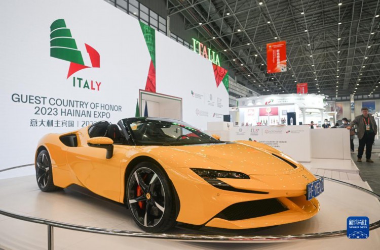 这是第三届中国国际消费品博览会意大利主宾国展台(4月8日摄)。