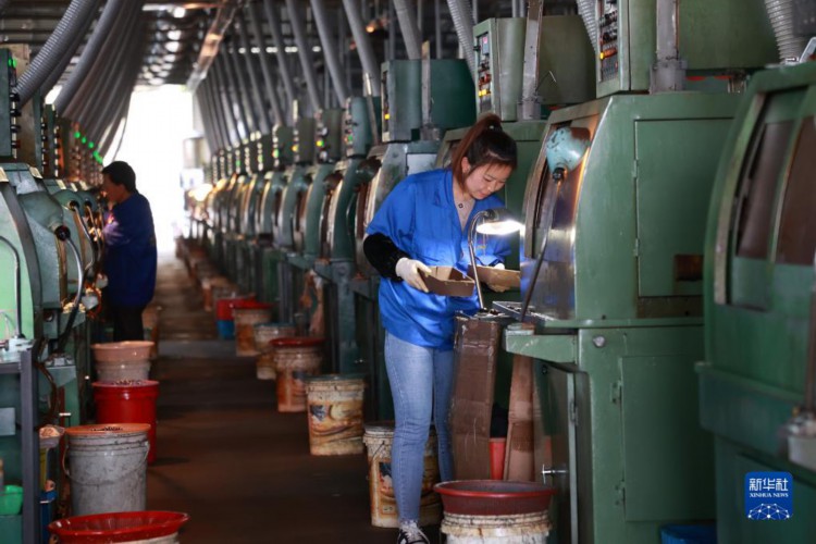 4月10日,搬迁群众在独山县望城社区安置点附近的轴承产业园区内生产轴承。
