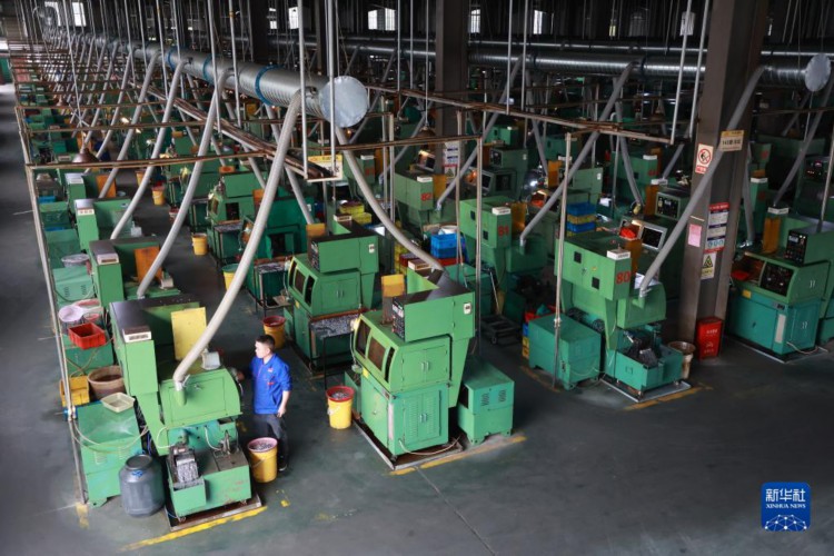 4月10日,搬迁群众在独山县望城社区安置点附近的轴承产业园区内生产轴承。