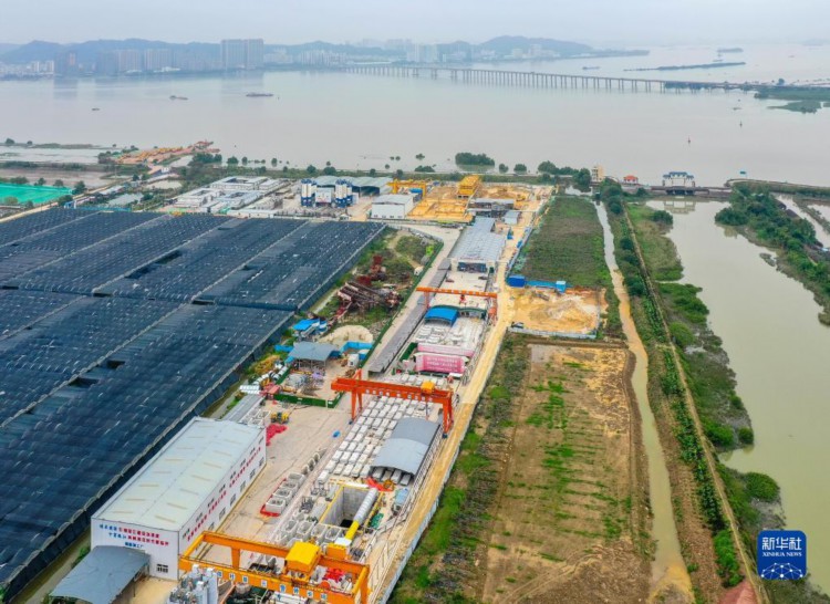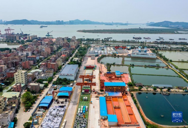 这是深江铁路珠江口隧道东莞虎门段盾构起始点(4月7日摄,无人机照片)。