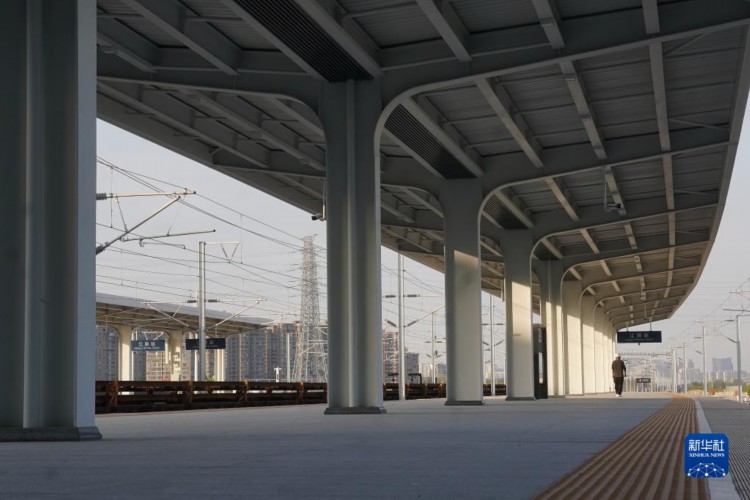4月10日拍摄的沪宁沿江高铁江阴站站台。