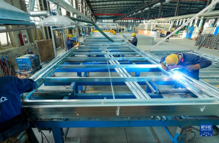 4月11日,河北省玉田县一家装配式建筑制造企业的工人在生产线上进行焊接作业。 近年来,河北省玉田县以市场为导向,大力发展装配式建筑制造产业,推动一批产业项目落地生根,为县域经济发展注入新的活力。目前,玉田县共有装配式建筑制造企业十余家,年产值超过36亿元。 新华社记者 牟宇 摄