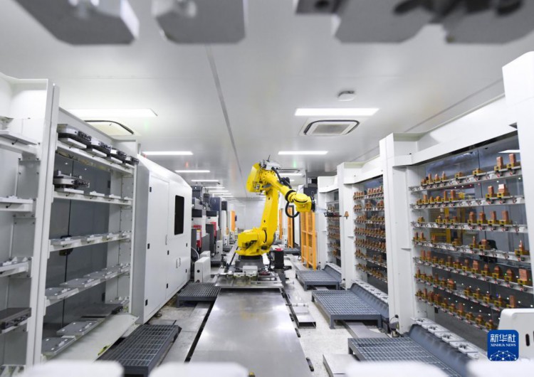 4月11日,在位于余姚的宁波劳仕塑业科技有限公司,机器人在模具数字智能化工厂加工模具零件。