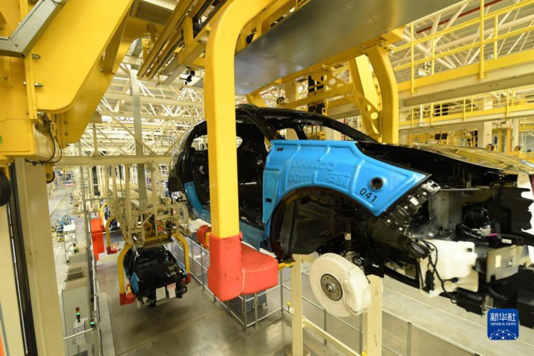 4月11日,在领克汽车宁波余姚工厂总装车间,全自动生产线将新能源车运送到下一个环节。