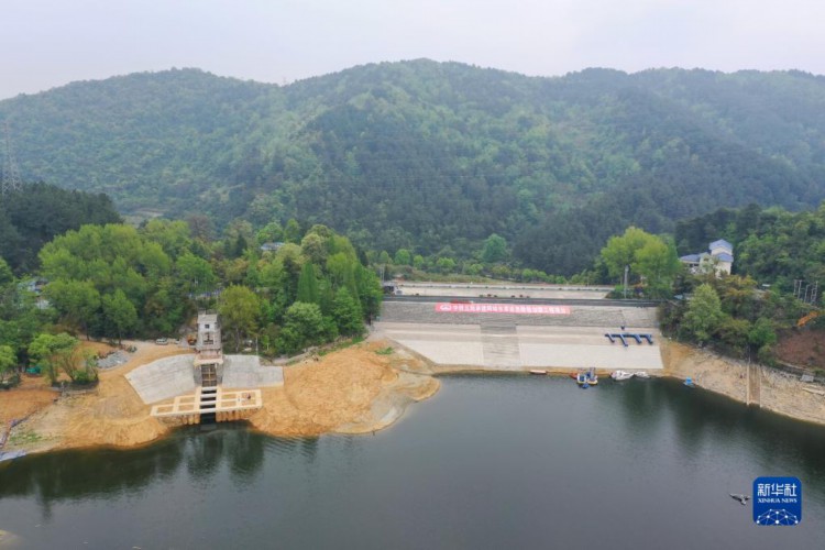 4月11日拍摄的加固工程主体完工后的阿哈水库大坝(无人机照片)。