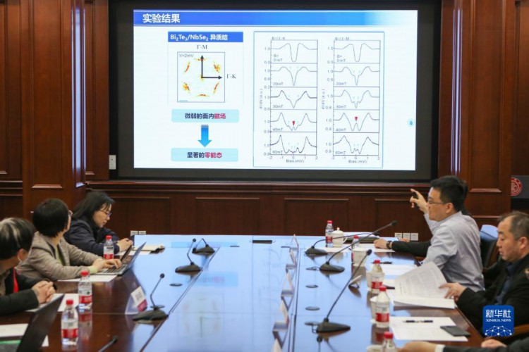 4月12日,上海交通大学物理与天文学院教授郑浩(右排中)介绍“实验证实超导态‘分段费米面’”成果。