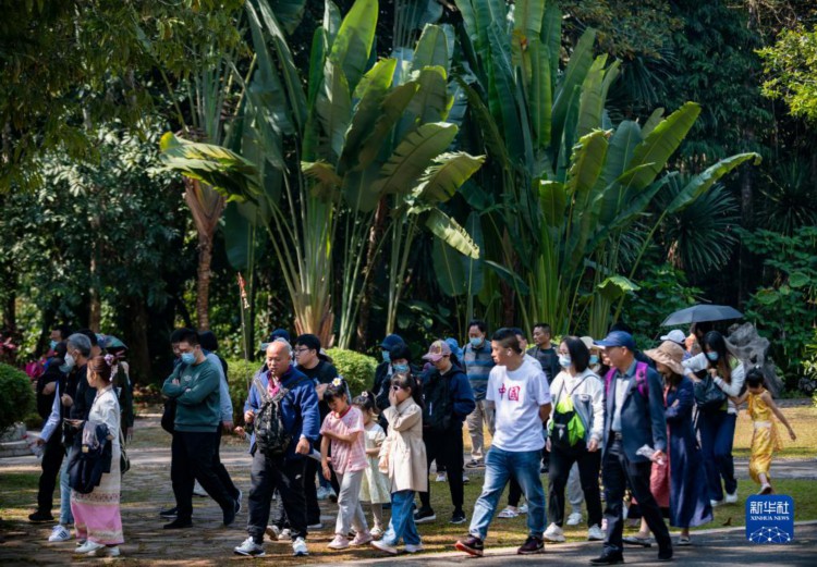 游客在位于云南省西双版纳州勐腊县勐仑镇的中国科学院西双版纳热带植物园内游览(2023年2月12日摄)。 新华社记者 陈欣波 摄