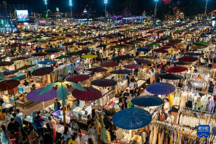 这是云南省西双版纳景洪市告庄西双景星光夜市(2023年2月12日摄)。 新华社记者 陈欣波 摄 |